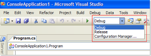 (If you do not see this drop down, go to Tools, Options, Projets and Solutions, and make sure "Show advanced build configurations" is checked)